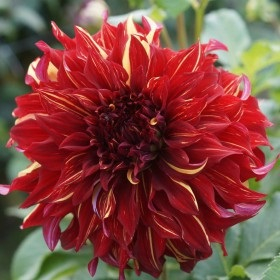 Dalie decorativa foarte frumoasa, flori de culoare rosu inchis cu accente galbene, inaltime 100-150 cm.