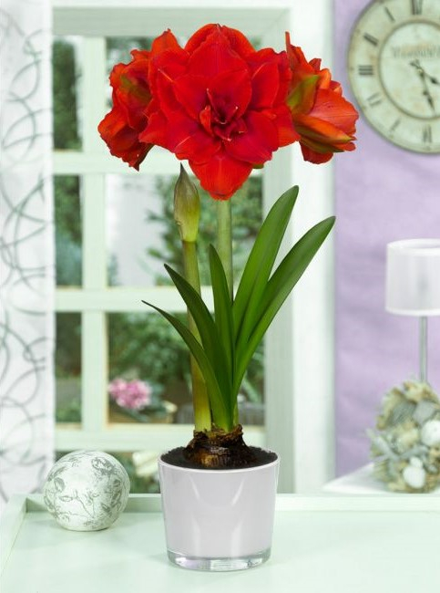 Amaryllis sau crin de camera dublu de culoare rosie marime bulb 26/28
