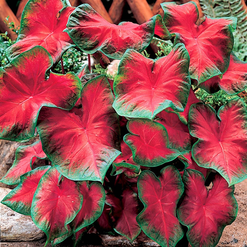 Frunze roșii izbitoare, puse în valoare de margini verzi delicate. Această superbă plantă se mândrește cu frunze mari, în formă de inimă, de un roșu aprins, cu margini verzi delicate, perfecte pentru a adăuga o licărire de culoare vibrantă în locurile umbroase. Plantați caladiumurile Freida Hemple sub copaci, de-a lungul aleilor umbrite sau în ghivece decorative, pe o terasă adăpostită. Deși rareori înfloresc, frunzișul lor creează suficientă dramă pentru a sta singure. Aduceți ghivecele în interior înainte de primul îngheț, deoarece aceste plante delicate nu sunt rezistente la iarnă. Ideale ca plantă de acoperire a solului sezonieră sau ca plantă de accent deosebită.