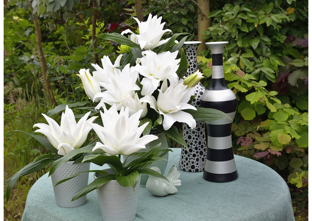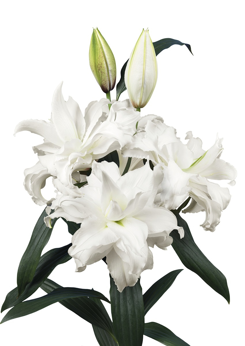 Crin trandafir Angela de un alb imaculat ! .Crinii dubli orientali mai sunt numiti si crini-trandafir datorita formei florilor ce seamana cu florile trandafirilor. Ei sunt folositi mai ales de floristi pentru buchete sau aranjamente atat datorita frumusetii cat si faptului ca nu au polen. Este mai putin parfumat decat crinii simpli orientali pentru a putea fi folositi in spatii inchise.Are o inaltime de circa 100 cm si infloreste in august. Are nevoie de 15-16 saptamani de la plantare la inflorire. Bulb foarte mare 21/23 !