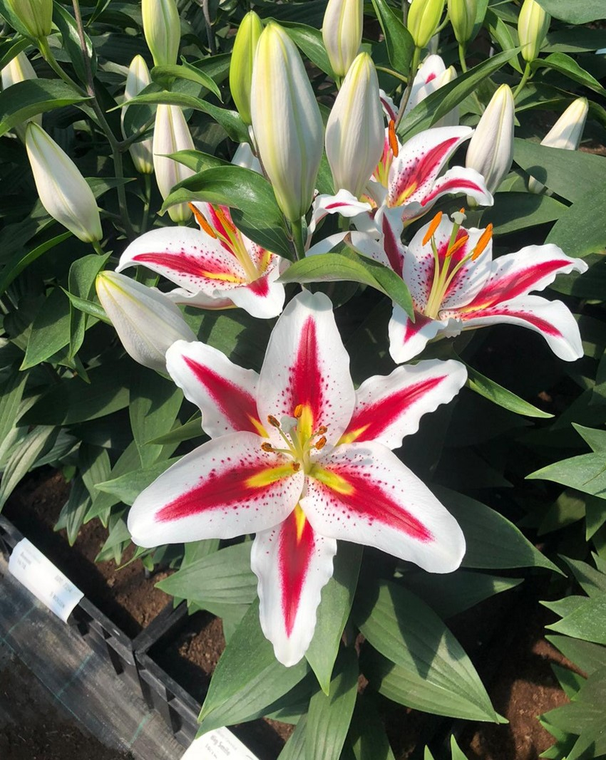 Crin oriental  parfumat Big Smile foarte vedel , alb cu rosu pe mijlocul petalelor si un strop de galben ! Inaltime 80-100 cm ,infloreste in august.