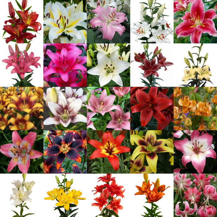 Pachet format din 25 crini longiflorum-asiatici, asiatici si orientali bulbi marime 16/18, 18/20. Acestia au inaltimi de 80-120 cm, infloresc in iunie-iulie iar cei orientali in august.