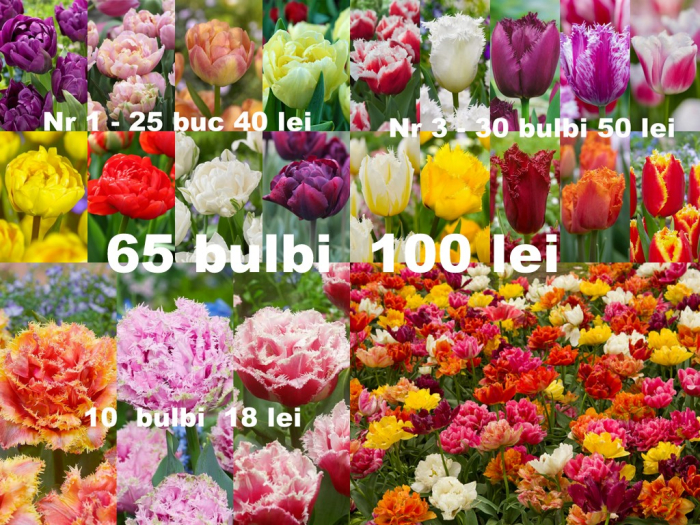 -nr 1 - pachet lalele duble tarzii , batute, tip bujor 8 soiuri 25 bucati