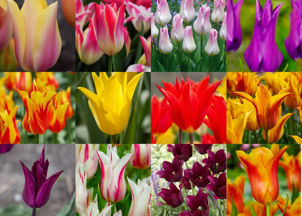 Pachet fprmat din 12 soiuri de lalele tip crin. Acestea se disting prin eleganta , avand tulpina inalta de 50-60 cm si forma alungita a florilor . Infloresc in mai.