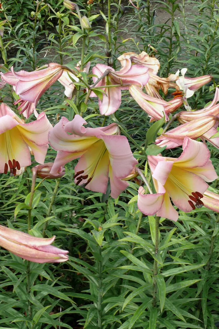 Crin OT ( orientali-trompeta ) , crin copac Beijing Moon. Crinii OT sunt obtinuti prin incrucisarea crinilor orientali si trompeta luand de la acestia parfumul si statura inalta, de pana la 2 m , de aceea acestia se mai numesc si crini-copac Beijing Moon are o frumoasa culoare alb-roz , este parfumat, creste inalt, infloreste in iulie-august.