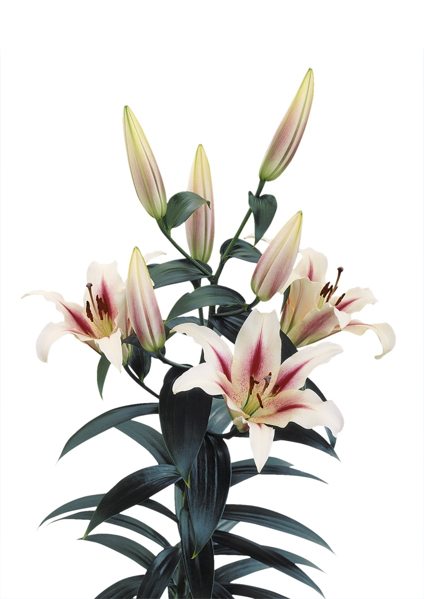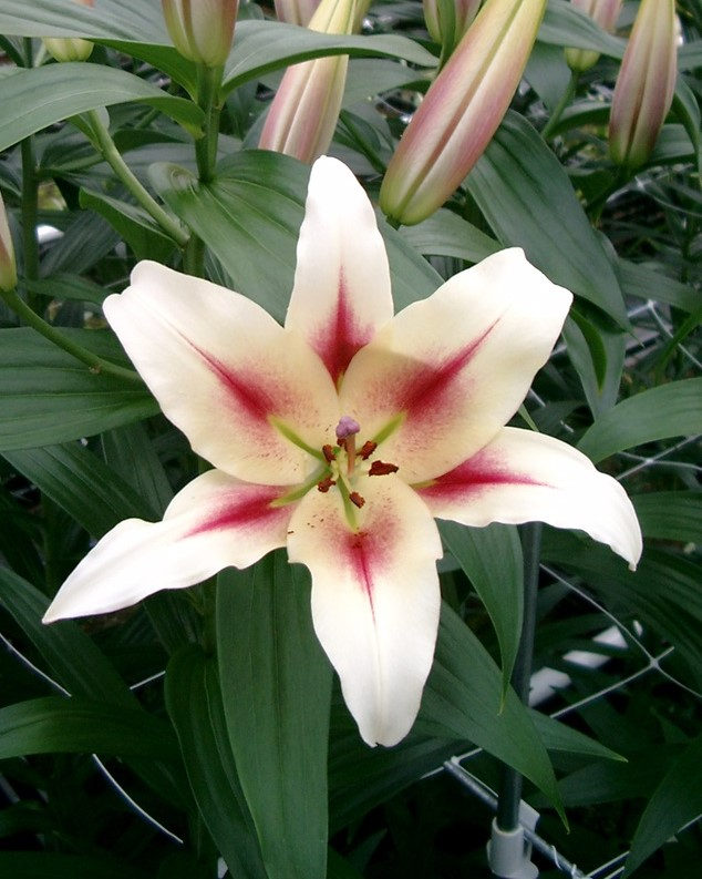 Crin OT (oriental-trompeta )  crin-copac,  foarte frumos,alb cu rosu pe mijlocul petalelor, creste inalt de 150-180 cm , parfumat, infloreste in iulie-august.